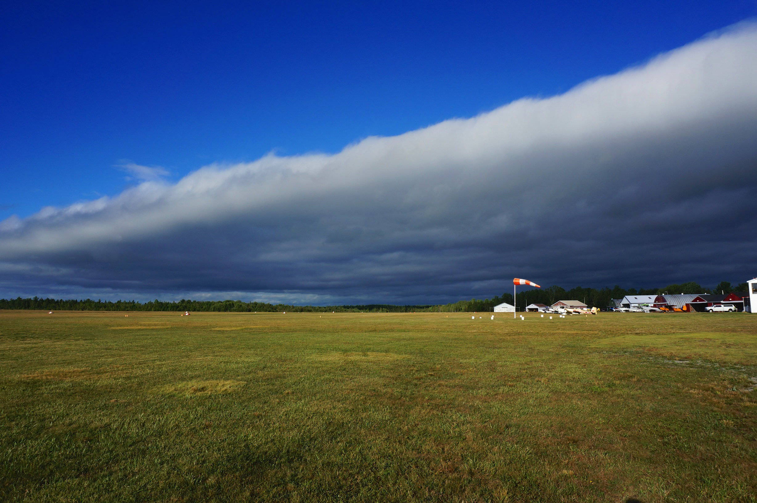 It was about 1300 ft overcast at Yarmouth, so I had to fly an RNAV approach to get in, but I had the runway visual about 5 miles back. We had a quick lunch, packed Dad’s tent and sleeping bag in the aircraft, then blasted up to Stanley, under 1500 ft overcast the whole way up. Stanley had low clouds and high winds for most of the day, and we were one of the few aircraft that made it in on Friday. There was a large drive-in contingent though, with many dozen campers, trailers, RVs, etc.