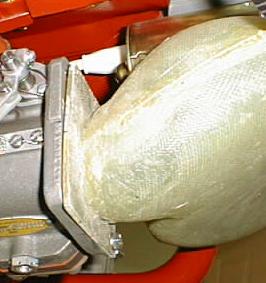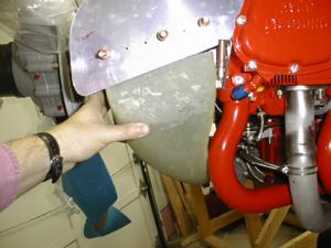 The fibreglas snorkel must be trimmed to length at the top - the idea is to have it just clear the starter, so that it is as high and as aft as possible, to make sure there is adequate clearance between the snorkel and the lower cowling.