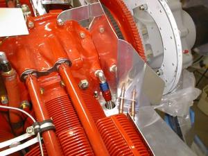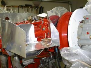 Sunday I attacked the right baffle floor piece. I had to make a hole to allow the oil line for the propeller pitch control to pass through. It took a bit of work with the drill, nibbler, file and sandpaper, but it came out fine.